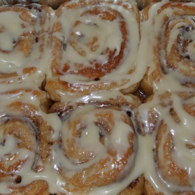 Pour mixture over the frozen rolls. Put in oven overnight, uncovered. In the morning, turn oven to 350 degrees and bake for 20-25 minutes. Let set for 5 minutes and then add cream cheese icing that comes with the rolls.