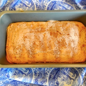 Preheat oven to 350 degrees. Mix softened ice cream and flour. Stir in cinnamon (or any add-ins you'd like). Pour into greased loaf pan. Sprinkle cinnamon/sugar mixture on top. Bake about 35-40 minutes, until knife inserted comes out clean.