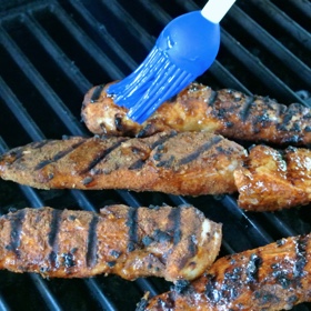 While chicken is grilling, prepare glaze. Warm honey in microwave for a few seconds so it’s not so thick. Add vinegar and lime juice. Combine well and reserve 2 T. for later. When chicken is done, but still on grill, brush glaze on both sides of chicken. Be careful, as the honey will drip and make a hot mess, but it’s worth it. Leave on grill for 1-2 minutes to make a crusty, sweet glaze on chicken. Remove from grill and serve with reserved glaze for dipping.